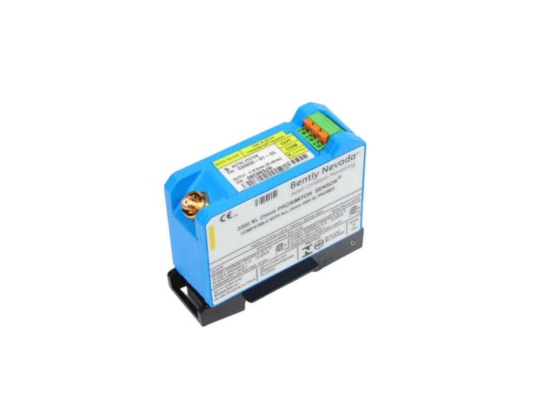 330850-90-00 is a Bently Nevada 3300 XL series 25mm Proximitor Sensor, which is used to convert the signal from the proximity probe into a standardized voltage output for vibration, displacement and position analysis in the monitoring system. This module is designed for harsh industrial environments and can be seamlessly integrated with 3300 XL series probes and extension cables to ensure measurement accuracy and long-term stability.