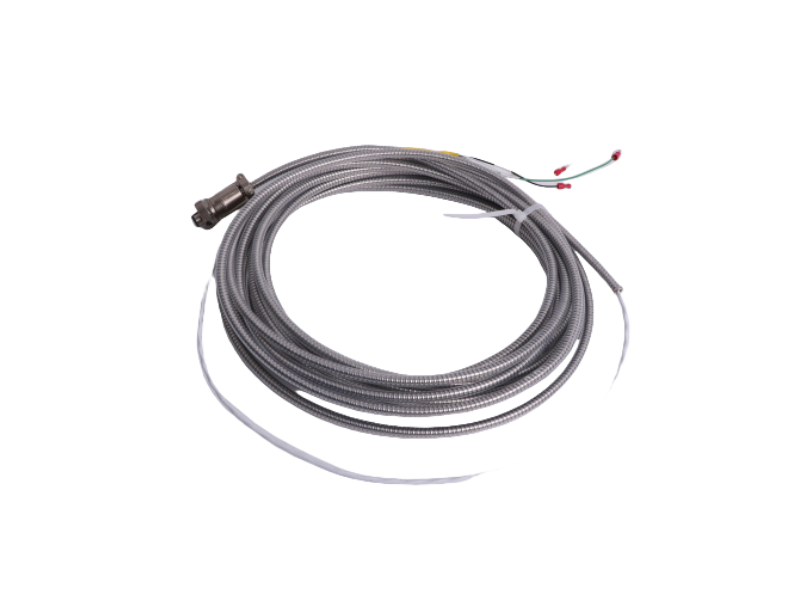 Bently Nevada 84661-33 is a standard armored/shielded interconnect cable designed specifically for its vibration/velocity monitoring systems (such as Velomitor® sensors, 3300/3500 series monitoring modules). It is used to connect the on-site installed proximity probes/velocity/vibration sensors to the monitoring host or I/O cabinet and undertake the task of signal transmission. For those situations where the distance between the sensor and the cabinet is moderate (about a few meters), 84661-33 provides a stable, high-fidelity and anti-interference connection, and is an important basic accessory for mechanical condition monitoring systems.
