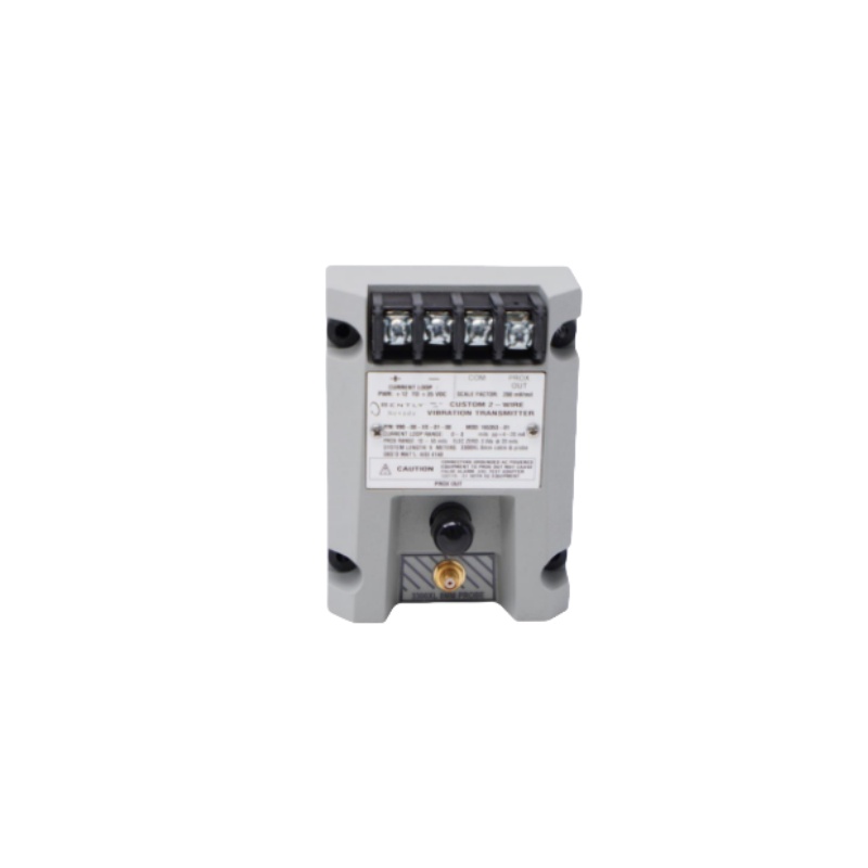 Model 990-08 - XX - 01-00 is a two-wire (loop - powered) vibration transmitter in the Bently Nevada 990 series. Designed to convert mechanical vibrations (peak-to-peak vibrations) approaching a probe (such as a 3300 NSv probe) into a standard 4-20 mA analog signal. It is suitable for vibration monitoring and alarm in industrial control systems (PLC/DCS).